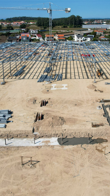 Numa fase posterior, a Grownor avançará com a montagem da segunda fase da estrutura metálica da nave industrial, bem como com a aplicação dos revestimentos de cobertura e fachada correspondentes à primeira fase.
